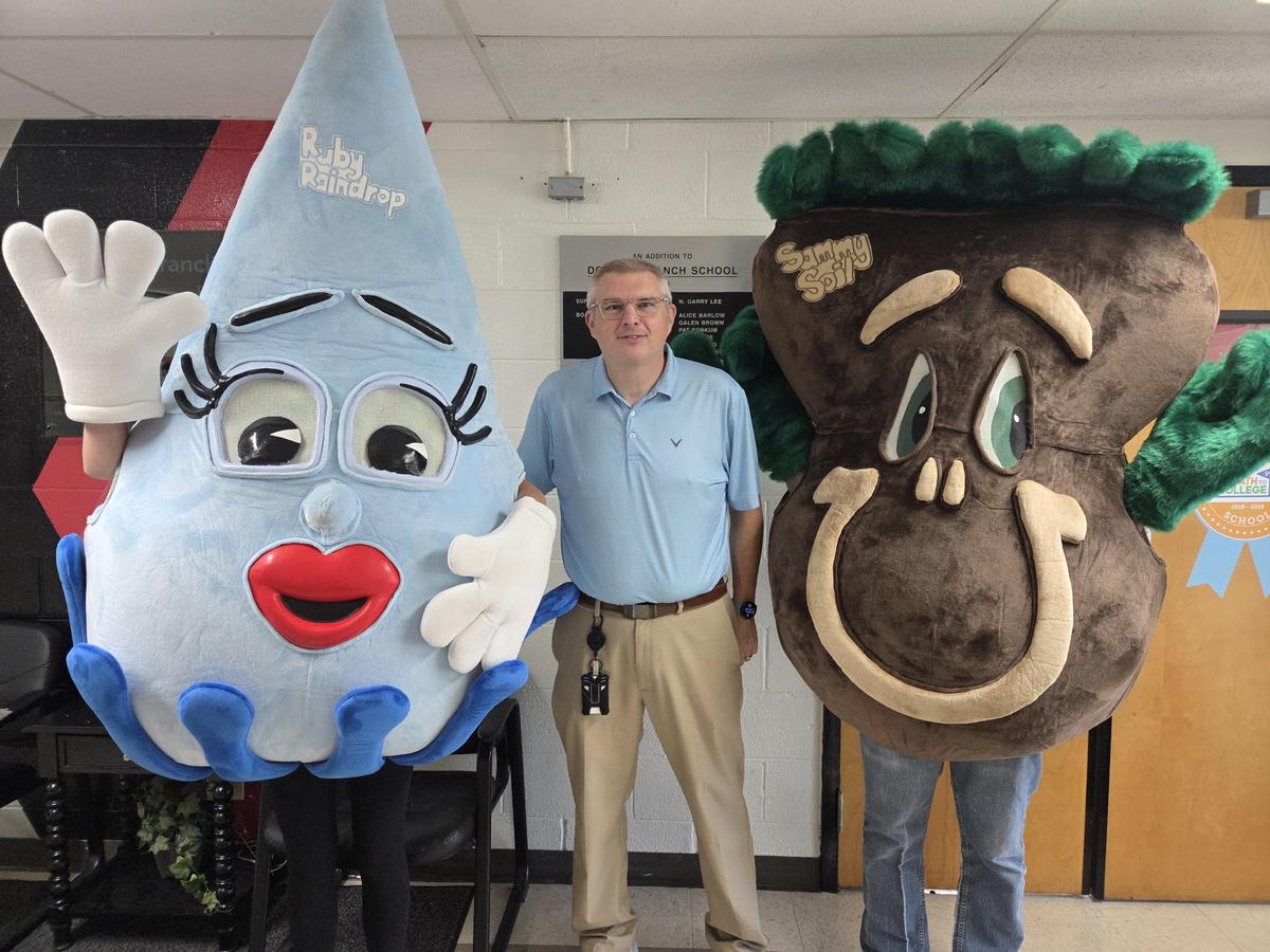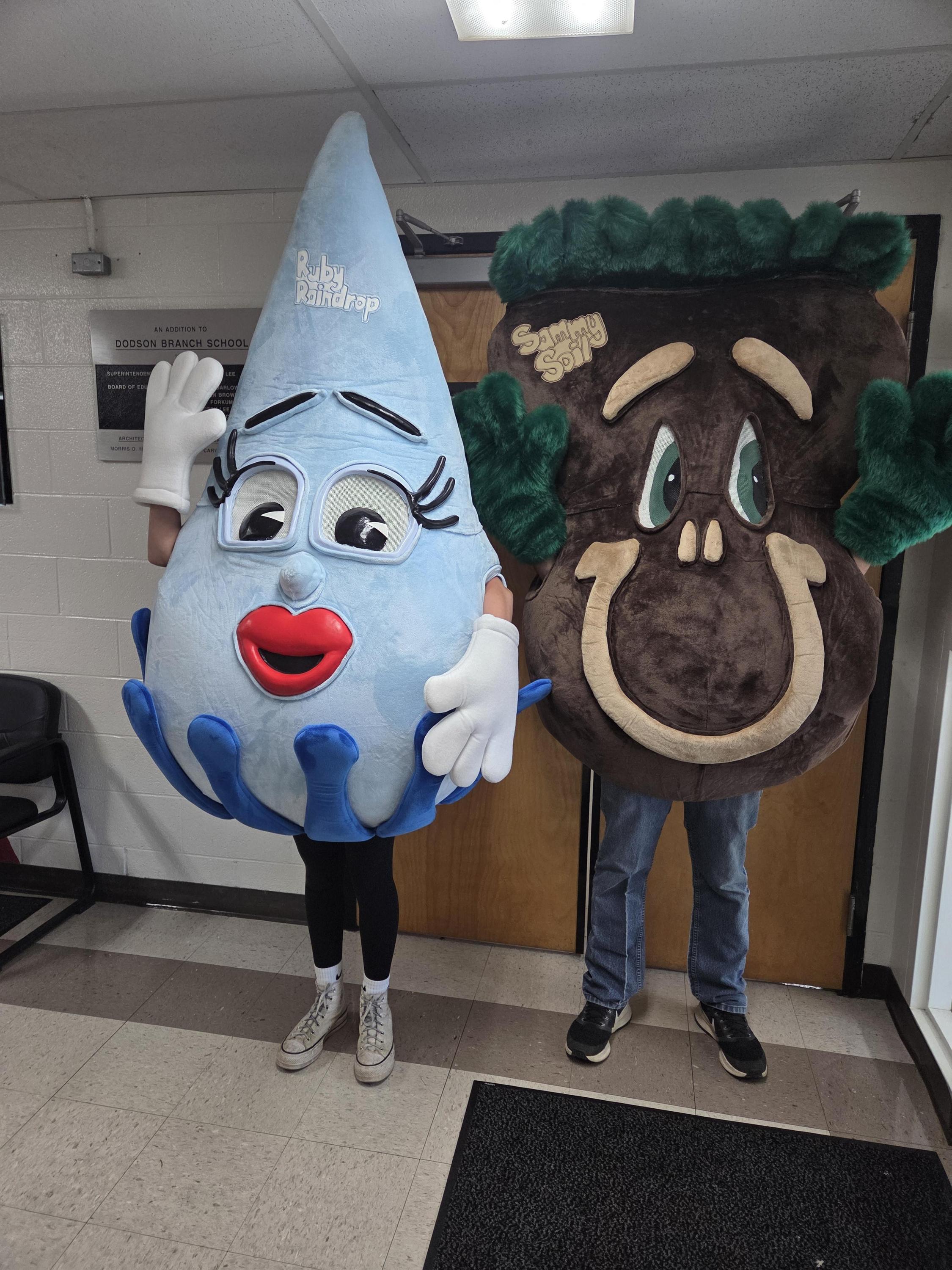 Sammy Soil visits DBS! Today, during Pre-K-1st-grade lunch, Sammy Soil came to teach them about the environment.