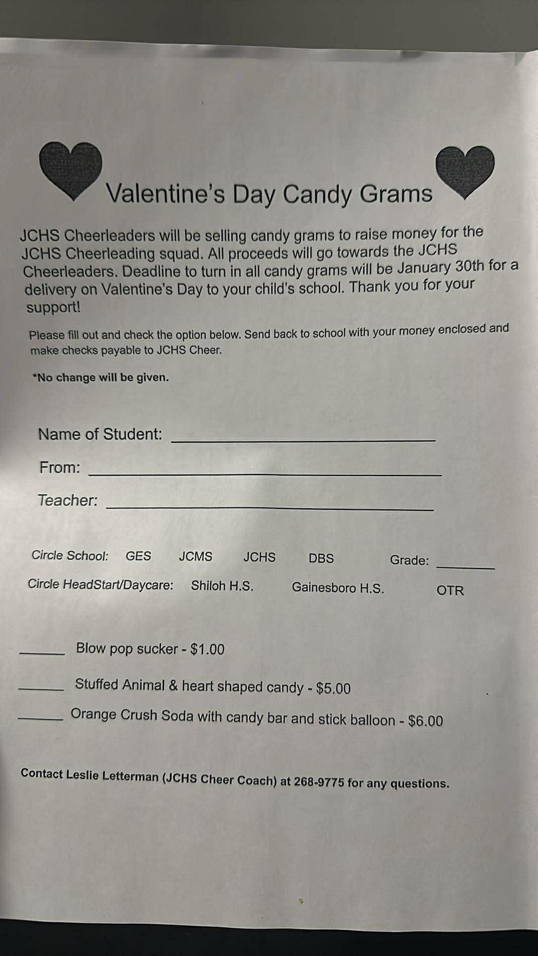 Valentine's Day Candy Gram Just a reminder, Valentine's candy grams are due the day we come back to school from our snow days. Thank you!